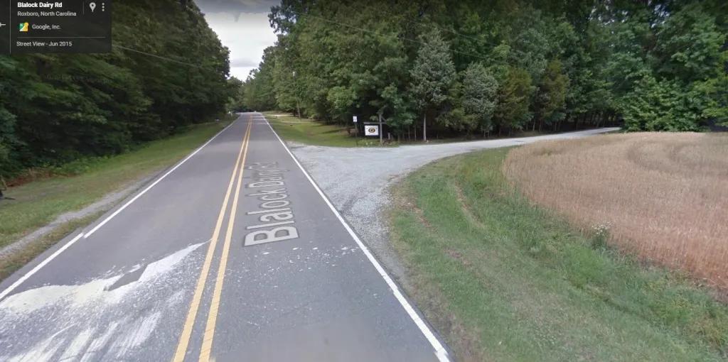 Навигатор любит людей на слёт посылать через лес. Предлагаем вам лучший способ добраться: проложите маршрут до адреса “1081 Blalock Dairy Rd, Roxboro, NC 27574“, после него первый поворот направо.